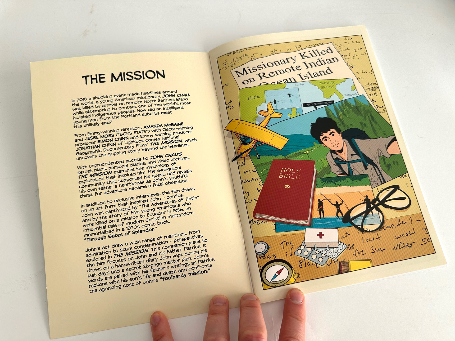 An artfully printed comic book developed in the same style as the animation for "The Mission." The book was created as an exciting promotional takeaway piece to accompany the film at festival screenings and other distinguished events.